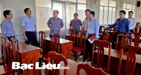 Đồng chí Huỳnh Quốc Việt - Phó Bí thư Thường trực Tỉnh ủy kiểm tra cơ sở vật chất hội trường chuẩn bị Đại hội Đảng bộ thị trấn Châu Hưng. Ảnh: M.Đ