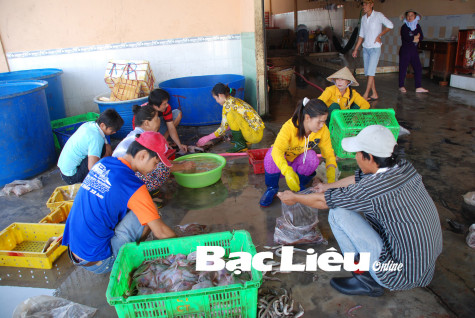 Lao động được giải quyết việc làm ở các cơ sở dịch vụ nghề cá (ảnh trên) và cơ sở đóng tàu đánh bắt xa bờ ở thị trấn Gành Hào (huyện Đông Hải). Ảnh: K.T