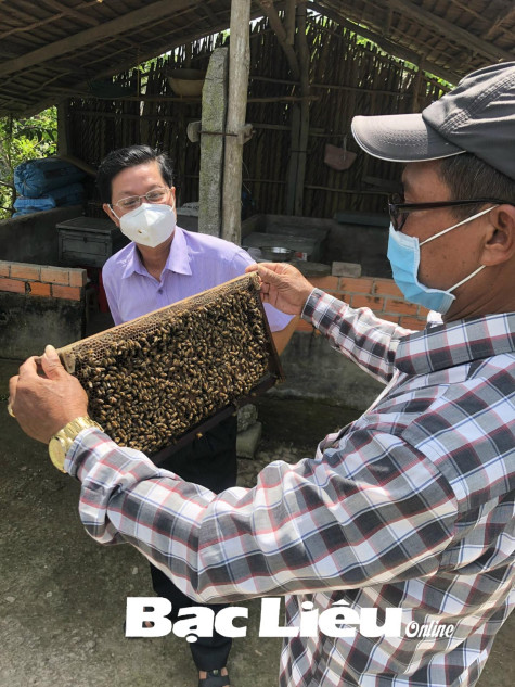 Mô hình nuôi ong lấy mật tại ấp Xẻo Quao (thị trấn Ngan Dừa, huyện Hồng Dân) bước đầu có hiệu quả. Ảnh: K.P