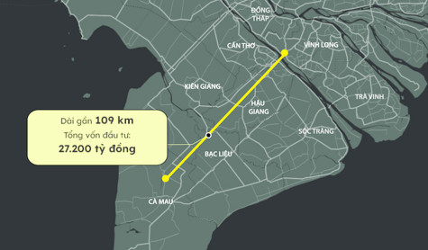 Cao tốc Cần Thơ - Cà Mau tổng mức đầu tư hơn 27.200 tỷ đồng, kết nối từ tuyến cao tốc Mỹ Thuận - Cần Thơ vào Quốc lộ 91 - Nam Sông Hậu, TP Cần Thơ, đi qua các tỉnh: Hậu Giang, Kiên Giang, Bạc Liêu và điểm cuối kết nối tuyến tránh TP Cà Mau.