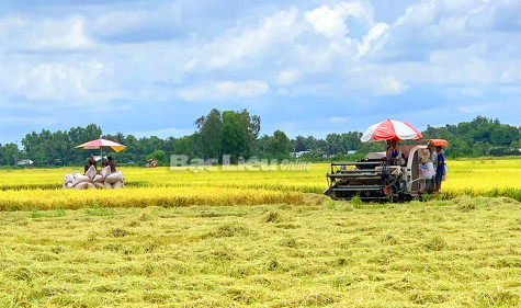 Thu hoạch lúa hè thu trên địa bàn huyện Hồng Dân.