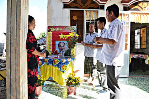| Khách đến thắp nhang bàn thờ Tổ quốc làm gia đình ông Châu Minh Nương ấm lòng. |