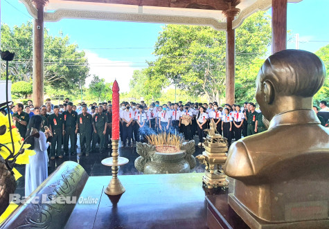Đông đảo người dân và các em học sinh viếng Đền thờ Chủ tịch Hồ Chí Minh (xã Châu Thới, huyện Vĩnh Lợi) nhân dịp sinh nhật lần thứ 134 của Người.
