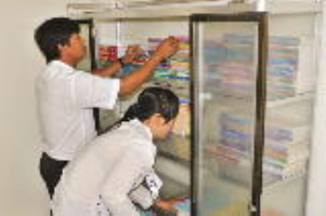 | Do không có người đến đọc sách, nhân viên trực Thư viện xã Tân Lộc Bắc lâu lâu mới thăm nom tủ sách. |