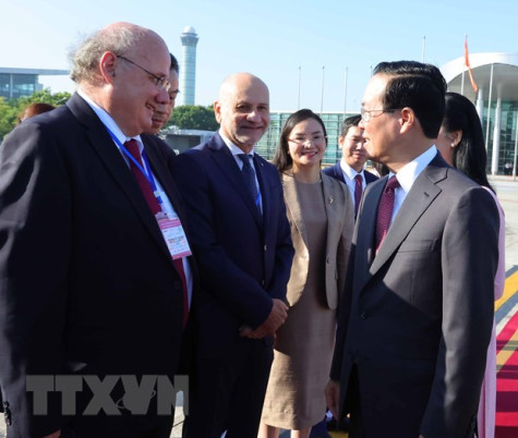 Lễ tiễn Chủ tịch nước - Võ Văn Thưởng lên đường thăm Áo. Ảnh: TTXVN