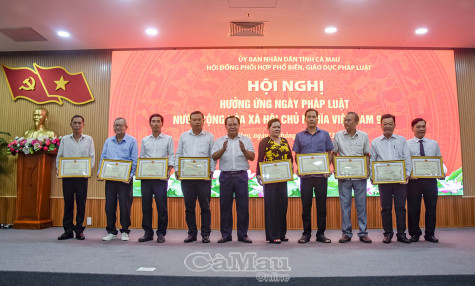 Dịp này, Ban tổ chức các cuộc thi “Tìm hiểu pháp luật năm 2023” tỉnh Cà Mau cũng tiến hành tổng kết và trao 1 giải Nhất, 2 giải Nhì, 3 giải Ba và 24 giải Khuyến khích cho các thí sinh đạt giải cuộc thi trực tuyến đợt V “Tìm hiểu pháp luật về an toàn, vệ sinh lao động và an toàn thực phẩm”; trao 1 giải Nhì (không có giải Nhất), 2 giải Ba, 10 giải Khuyến khích cho các thí sinh đạt giải Cuộc thi viết “Sáng kiến, mô hình, giải pháp trong công tác phổ biến, giáo dục pháp luật”./.