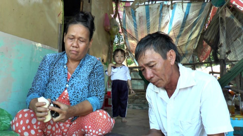 Gia đình của ông Trần Trường Sơn, ấp Tân Long A, xã Tân Tiến là hộ cận nghèo. Không đất sản xuất, cuộc sống hằng ngày của cả gia đình chỉ phụ thuộc vào việc bán khoai mì chiên với thu nhập chỉ từ 30.000-50.000 đồng/ngày. Kiếm sống đã khó, vì vậy việc mua BHYT cho 8 khẩu của gia đình là chuyện không thể.Cho nên khi được các nhà hảo tâm hỗ trợ 30% phí BHYT còn lại, vợ ông mới có điều kiện đi Cà Mau chữa bệnh 10 ngày 1 lần theo yêu cầu của bác sĩ.