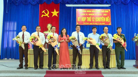 Theo đó, HĐND huyện xem xét tờ trình nhân sự mới bầu vào các chức danh theo quy định. Kết quả ông Trần Văn Dũng, Phó bí thư thường trực Huyện ủy trúng cử chức danh Chủ tịch HĐND huyện khóa XI, nhiệm kỳ 2016-2021; ông Lý Minh Vững, Phó bí thư Huyện ủy, trúng cử chức danh Chủ tịch UBND huyện khóa XI; ông Nguyễn Hoàng Bạo, Ủy viên Ban Thường vụ Huyện ủy, Chánh văn phòng HĐND-UBND huyện và ông Trần Minh Nhân, Huyện ủy viên, Bí thư Đảng ủy thị trấn Thới Bình trúng cử chức vụ Phó chủ tịch UBND huyện khóa XI, nhiệm kỳ 2016-2021.