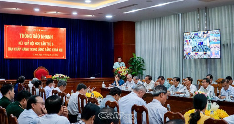 (CMO) Chiều ngày 14/10, đồng chí Nguyễn Tiến Hải, Uỷ viên BCH Trung ương Đảng, Bí thư Tỉnh uỷ, Chủ tịch HĐND tỉnh chủ trì hội nghị thông báo nhanh kết quả Hội nghị lần thứ sáu, BCH Trung ương Đảng khoá XIII. Hội nghị được trực tuyến với các điểm cầu các huyện uỷ, thành uỷ, đảng uỷ trực thuộc Tỉnh uỷ.
