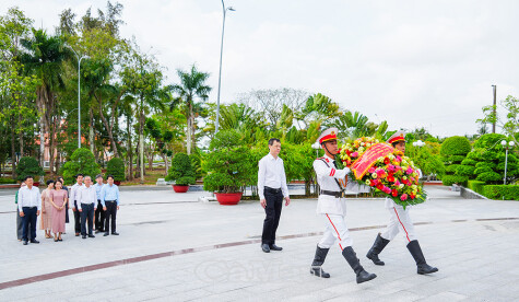 Thứ trưởng Bộ Y tế Nguyễn Tri Thức dâng hương trước Đài Tổ quốc ghi công tại Nghĩa trang Liệt sĩ tỉnh Cà Mau (xã Hoà Bình).