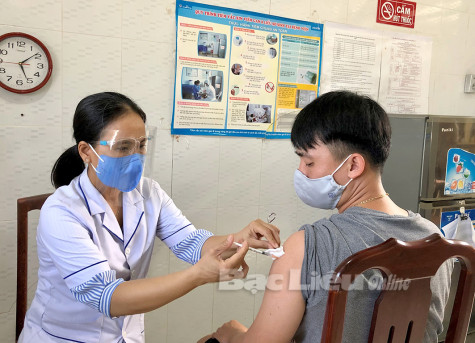 Huyện Vĩnh Lợi tổ chức tiêm chủng vắc-xin phòng COVID-19 đợt 8 cho người dân trên địa bàn. Ảnh: N.Q