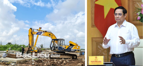 Thi công tuyến đê biển Đông đoạn TP.Bạc Liêu - huyện Hòa Bình.