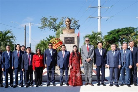 Trong chương trình thăm chính thức Cộng hòa (CH) Dominica, sáng 21-11, theo giờ địa phương, Thủ tướng Chính phủ Phạm Minh Chính và phu nhân cùng đoàn đại biểu Việt Nam dự Lễ khánh thành tôn tạo và đặt vòng hoa tại tượng đài Chủ tịch Hồ Chí Minh ở thủ đô Santo Domingo.
