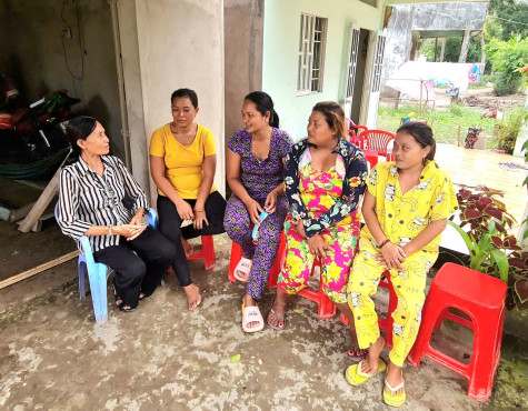 Bà Lâm Thị Dol - Chi hội trưởng Chi hội Phụ nữ ấp Công Điền (xã Vĩnh Trạch, TP. Bạc Liêu) tuyên truyền về bình đẳng giới cho chị em phụ nữ trong ấp. Ảnh: M.L