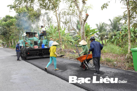 Thi công đường giao thông ở huyện Vĩnh Lợi (ảnh trên) và công trình thủy lợi tuyến ven biển Bạc Liêu từ vốn đầu tư công. Ảnh: K.T