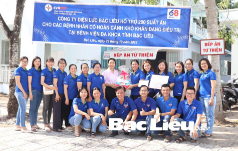 Công ty Điện lực Bạc Liêu tổ chức nấu 200 suất ăn cho bệnh nhân tại Bệnh viện Đa khoa Bạc Liêu. Ảnh: K.P