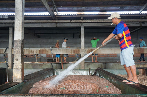 | Chế biến đầu vỏ tôm với công nghệ thô sơ, không bảo hộ tại Khu Công nghiệp Hoà Trung, vừa ảnh hưởng sức khoẻ công nhân, vừa gây mùi hôi thối ra môi trường. |
