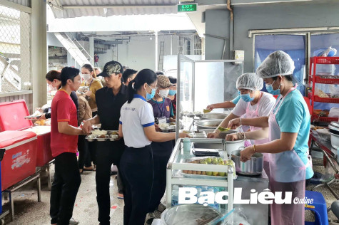 Người lao động làm việc tại Công ty cổ phần chế biến thực phẩm Minh Trí được hỗ trợ bữa ăn trưa.