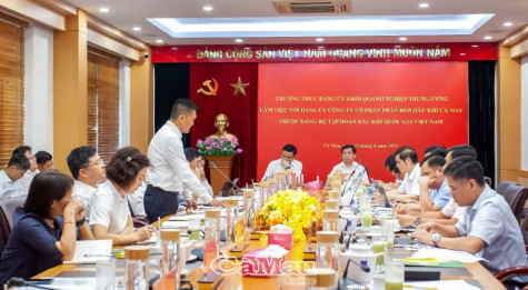 Ông Văn Tiến Thanh, Bí thư Đảng ủy, Tổng giám đốc Công ty cổ phần Phân bón Dầu khí Cà Mau đã báo cáo với đoàn công tác những nội dung trọng tâm Đảng uỷ Công ty đã thực hiện trong thời gian qua: Việc phổ biến, quán triệt, triển khai Nghị quyết của Đảng bộ Khối và Đảng bộ Tập đoàn tại đơn vị; Đánh giá tình hình và kết quả thực hiện Nghị quyết Đại hội Đảng bộ Công ty nhiệm kỳ 2020-2025 đến thời điểm hiện tại, các nhiệm vụ, giải pháp trọng tâm từ nay đến năm 2025; những khó khăn, thách thức trong quá trình triển khai các nghị quyết và giải pháp, bài học kinh nghiệm...