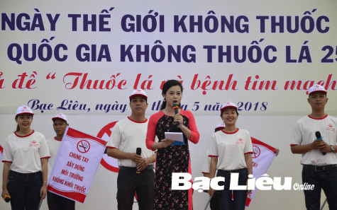 ĐV-TN tỉnh Bạc Liêu tham gia mít-tinh hưởng ứng Ngày Thế giới không thuốc lá và Tuần lễ quốc gia không thuốc lá. Ảnh: C.K