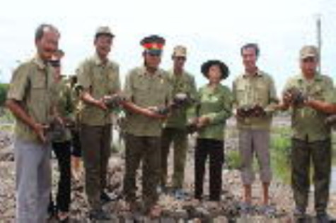 | Cựu chiến binh góp sức xây dựng lộ nông thôn xã Tân Ân Tây.. |