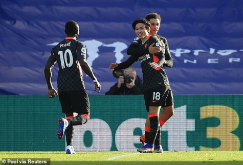 Minamino (18) ghi bàn đầu tiên tại giải Ngoại hạng Anh, khởi đầu cho chiến thắng kinh hoàng của Liverpool.