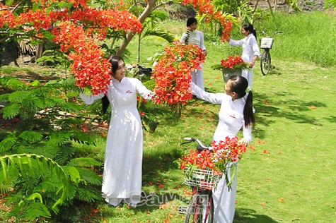 Đợt này nghỉ dài, cô giáo tôi cũng lửng quên mùa này hoa phượng đang cháy đỏ từng chùm và sân trường rộn rã tiếng ve. Nhưng hôm qua, lúc đi ngang qua ngôi trường cạnh nhà, bất chợt nhìn thấy hoa phượng bung trĩu từng chùm. Rồi lại nghe ve ngân từng hồi, lòng bỗng xốn xang, bồi hồi.