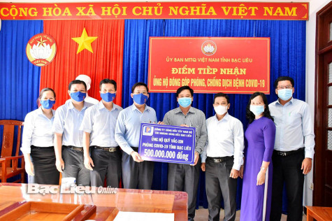 Sáng 14/6, Chi nhánh Xăng dầu Bạc Liêu (Petrolimex Bạc Liêu) đã trao 500 triệu đồng cho Ủy ban MTTQ Việt Nam tỉnh ủng hộ Quỹ phòng, chống dịch COVID-19.