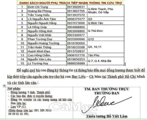 Đại diện Ban Liên lạc cho biết đã thông báo đến công dân là đồng hương quê Bạc Liêu - Cà Mau tại 3 khu vực nói trên được biết và cùng thông tin tới thân nhân để tiếp cận nguồn cứu trợ này.