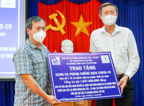 Lô hàng do Ban Điều hành chuyến xe nghĩa tình đồng hương và CLB Doanh nhân thuộc Ban Liên lạc phối hợp Quỹ Đầu tư Dragon Capital tài trợ. Trong đó, trao tặng Bệnh viện Đa khoa Cà Mau: 1 máy thở Bennett 840, 2 máy siêu âm, 2 máy đầu dò, 1.000 đồ bảo hộ cấp 4, 5.000 khẩu trang N95; tặng Sở Y Tế Cà Mau gồm bình oxy (cho mượn vỏ bình) lớn (40 lít) 46, bình oxy nhỏ (8 lít) 100, đồng hồ oxy 40, dây thở oxy người lớn 50, áo hạ nhiệt 40, máy SPO2 10, dây chia oxy 30, 1.000 phần thuốc điều trị Covid-19 A, 1.000 phần thuốc điều trị Covid-19 B.