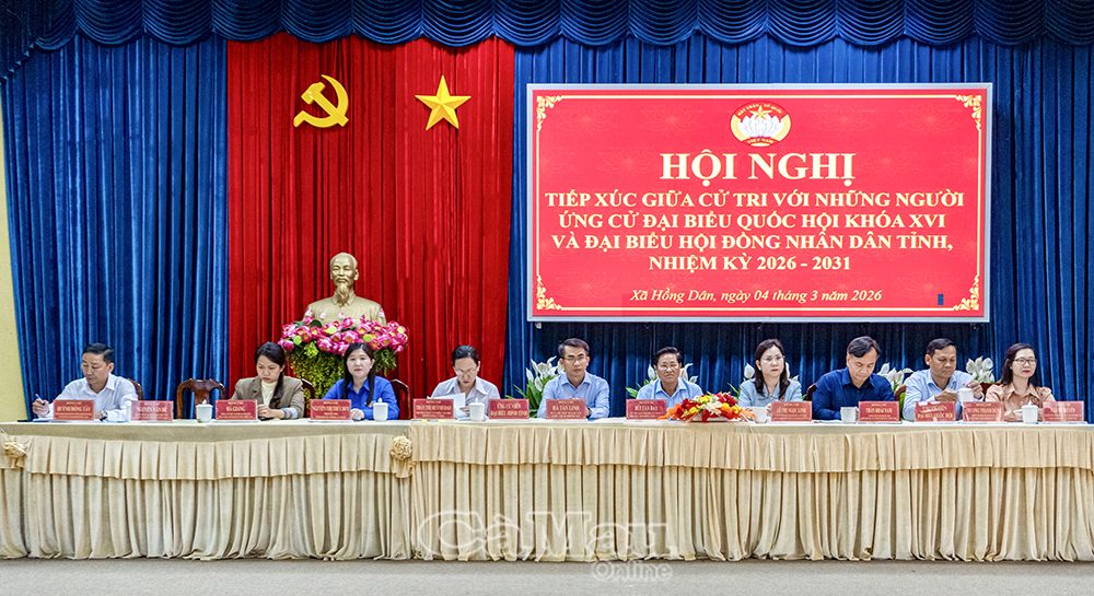 *Ngày 4/3, Uỷ ban MTTQ Việt Nam tỉnh Cà Mau phối hợp với các xã Hồng Dân và Vĩnh Lộc tổ chức hội nghị tiếp xúc giữa cử tri với những người ứng cử đại biểu Quốc hội khoá XVI và đại biểu HĐND tỉnh, nhiệm kỳ 2026-2031.