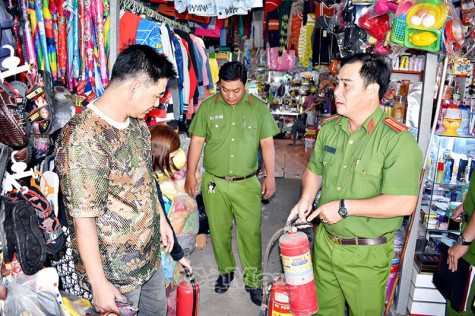 Lực lượng công an huyện kiểm tra các cơ sở kinh doanh, các điểm chợ, khu dân cư, nhằm kịp thời nhắc nhở, khắc phục những tồn tại, thiếu sót có khả năng xảy ra cháy, nổ.