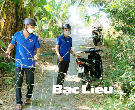 Đoàn viên - thanh niên Chi đoàn ấp Bà Chăng (thị trấn Châu Hưng, huyện Vĩnh Lợi) phát quang bụi rậm. Ảnh: H.L