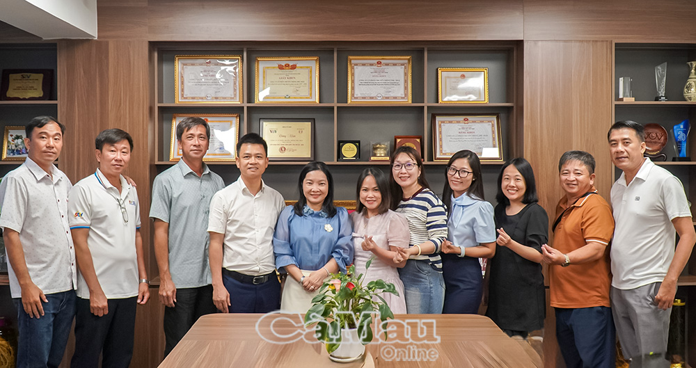 Đoàn công tác Báo và phát thanh, truyền hình Cà Mau chụp ảnh lưu niệm cùng đại diện Công ty Cổ phần Truyền thông Phú Thái.