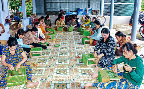 Cùng với Uỷ ban MTTQ các cấp trong huyện, Hội Liên hiệp Phụ nữ huyện Cái Nước hưởng ứng Cuộc vận động với nhiều hình thức phong phú, từng bước góp phần phát triển tiềm năng của thị trường địa phương. (Trong ảnh: Hội viên phụ nữ xã Hoà Mỹ được dạy nghề đan giỏ xách).