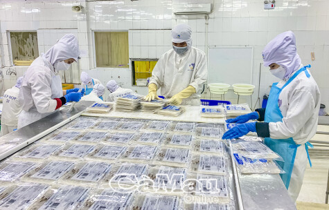 Nguồn thu tăng đột biến là do áp dụng chính sách thuế giá trị gia tăng đối với mặt hàng nông lâm thuỷ sản, đặc biệt là tôm nguyên liệu. (Ảnh chụp tại Công ty TNHH Thủy Sản Thái Minh Long, phường Giá Rai)