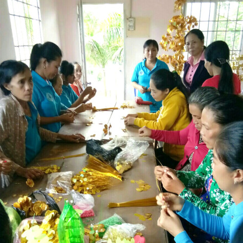 | Lớp dạy kết cườm do trung tâm dạy nghề huyện Thới Bình truyền nghề cho phụ nữ xã Tân Bằng. |
