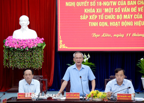 Từng cơ quan, đơn vị phải trên tinh thần chủ động xây dựng các đề án, đảm bảo tiến độ nhưng không để xảy ra sự xáo trộn, Bạc Liêu sẽ tiến hành từng bước, chờ việc sáp nhập, sắp xếp từ cấp Trung ương để làm theo. Các cơ quan, đơn vị sau sắp xếp lại phải thật sự tinh gọn, hiệu quả đúng như chủ trương chung của Trung ương và phù hợp thực tế địa phương... Đó là những chỉ đạo kỳ quyết của Bí thư Tỉnh ủy - Lữ Văn Hùng, Trưởng Ban chỉ đạo (BCĐ) tỉnh về tổng kết, đánh giá việc thực hiện Nghị quyết 18 của Ban Chấp hành (BCH) Trung ương khóa XII.
