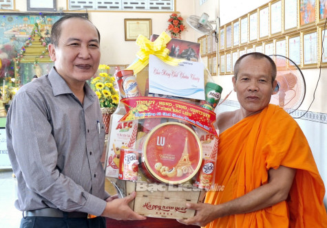 Đoàn công tác của Tỉnh ủy, HĐND, UBND, Ủy ban MTTQ Việt Nam tỉnh chúc Tết cổ truyền của đồng bào Khmer tại chùa Soryaram (xã Hưng Hội, huyện Vĩnh Lợi).