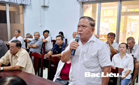 Cử tri Phường 3 (TP. Bạc Liêu) phát biểu ý kiến tại buổi tiếp xúc với Tổ đại biểu HĐND 2 cấp.