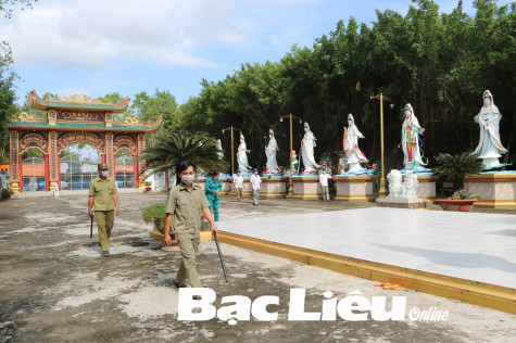 Các thành viên TTQ tuần tra đảm bảo ANTT quanh khuôn viên chùa Hưng Thiện. Ảnh: T.H
