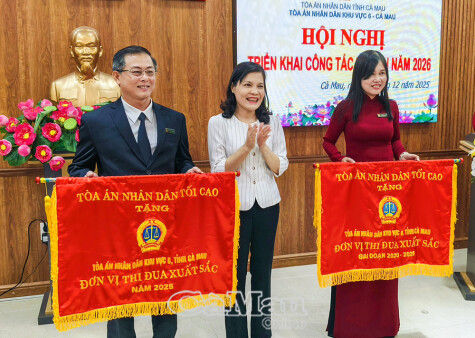 Ghi nhận những thành tích tiêu biểu, tại hội nghị, TAND khu vực 6 vinh dự đón nhận Cờ thi đua TAND năm 2025 và Cờ thi đua TAND giai đoạn 2020-2025; Bằng khen của Chủ tịch UBND tỉnh về thành tích tiêu biểu, xuất sắc trong các phong trào thi đua, góp phần tích cực vào sự phát triển kinh tế - xã hội của tỉnh Cà Mau giai đoạn 2020-2025./.