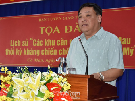 (CMO) Chiều 31/5, Ban Tuyên giáo Tỉnh uỷ phối hợp với Sở Văn hoá, Thể thao và Du lịch tổ chức buổi Tọa đàm lịch sử về “Các khu căn cứ Tỉnh uỷ Cà Mau thời kỳ kháng chiến chống Pháp, chống Mỹ”. Đồng chí Phạm Thành Ngại, Phó bí thư Thường trực Tỉnh uỷ, dự và phát biểu đề dẫn toạ đàm.