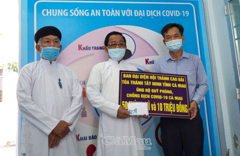 Đại diện Tòa thánh Tây Ninh tỉnh cho biết, hưởng ứng Lời kêu gọi của Đoàn Chủ tịch Uỷ ban Trung ương MTTQ Việt Nam cũng như của Chủ tịch Uỷ ban MTTQ Việt Nam tỉnh Cà Mau về “Toàn dân tham gia đợt cao điểm quyên góp ủng hộ phòng, chống dịch bệnh Covid-19”, cùng tinh thần đoàn kết tương thân tương ái, Tòa thánh Tây Ninh tỉnh tiếp tục ủng hộ 10 triệu đồng và 50 thùng mì để chia sẻ một phần khó khăn của người dân Cà Mau trên mặt trận chống dịch. Đây là lần thứ 2 Tòa thánh ủng hộ cho quỹ này.