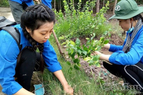 | Sinh viên Phân hiệu Trường Đại học Bình Dương tại Cà Mau làm sạch cỏ ven lộ. |