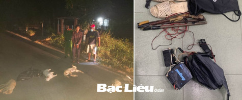 Kết quả, vào lúc 1 giờ 30 phút ngày 23/2/2024, Đội Cảnh sát Điều tra tội phạm về hình sự - kinh tế - ma túy (Công an huyện Đông Hải) phối hợp với Phòng Cảnh sát hình sự (Công an tỉnh) và Công an xã Long Điền tiến hành tuần tra tuyến đường từ ấp Thạnh 2 đến ấp Hòa Thạnh (xã Long Điền, huyện Đông Hải) thì phát hiện 2 đối tượng đang thực hiện hành vi dùng xung điện trộm chó nên đã tiến hành truy đuổi. Quá trình truy đuổi, phát hiện đối tượng Nguyễn Văn Nhiệm (sinh năm 1989, ngụ ấp Hòa Thạnh), điều khiển xe máy chở đồng bọn là Hồ Văn Còn (sinh năm 1981, ngụ khóm 2, Phường 1, TX. Giá Rai) trên đường đi thực hiện hành vi trộm chó của người dân. Khi bắt giữ, lực lượng Công an phát hiện trên phương tiện xe mô tô do các đối tượng điều khiển có 4 con chó đã chết với tổng trọng lượng 50,2kg, 1 xe mô tô biển số 94D1-300.39 và 1 bộ dụng cụ kích điện dùng để bắt trộm chó nên tiến hành bắt người phạm tội quả tang và tạm giữ các tang vật liên quan để phục vụ điều tra, xử lý.
