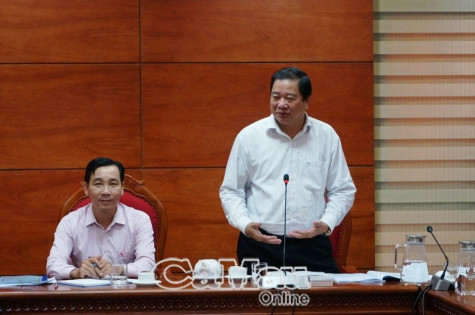 Phó Chủ tịch UBND tỉnh Cà Mau, Trưởng BĐD HĐQT NHCSXH tỉnh Cà Mau Thân Đức Hưởng phát biểu chỉ đạo tại cuộc họp
