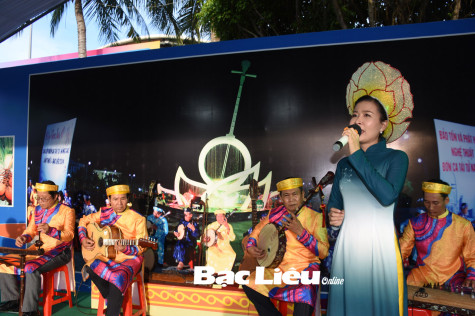 Biểu diễn nghệ thuật Đờn ca tài tử trong ngày hội du lịch diễn ra tại TP. Bạc Liêu.