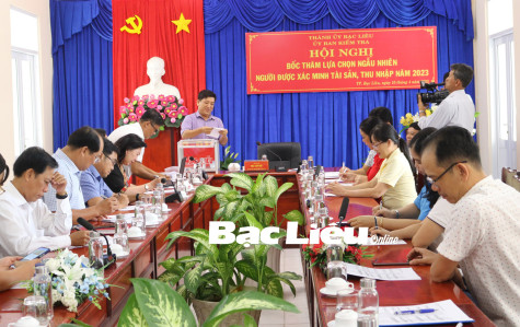 Sau khi nghe đồng chí Trương Công Điện - Chủ nhiệm Ủy ban Kiểm tra Thành ủy TP. Bạc Liêu triển khai kế hoạch, quán triệt mục đích, yêu cầu, phổ biến quy trình, phương pháp bốc thăm ngẫu nhiên người được xác minh tài sản, thu nhập năm 2023, Ủy ban Kiểm tra Thành ủy tiến hành bốc thăm lựa chọn người được xác minh tài sản, thu nhập. Kết quả, đã chọn được 11 người đại diện cho 11/53 đảng bộ, chi bộ cơ sở và các phòng, ban, ngành TP. Bạc Liêu để xác minh tài sản, thu nhập (bảo đảm tối thiểu 10% số người có nghĩa vụ kê khai hằng năm tại mỗi cơ quan, tổ chức, đơn vị được xác minh thuộc diện Ban Thường vụ Thành ủy quản lý).