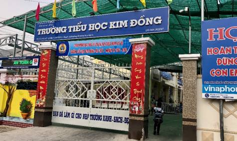 Trường tiểu học Kim Đồng (Phường 3, TP. Bạc Liêu) - nơi xảy ra vụ học sinh đánh nhau tại lớp. Ảnh: N.Q